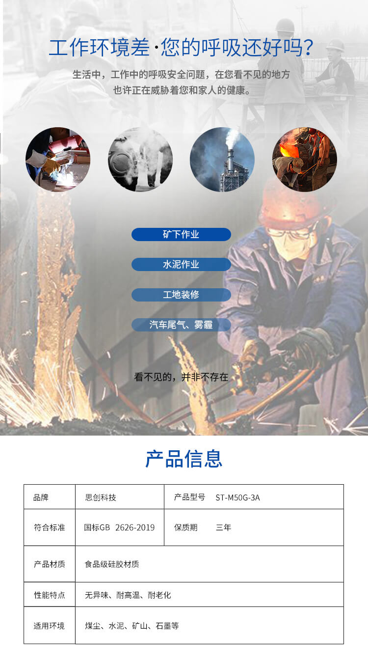 ST-M50G-3A硅膠雙濾防塵半面罩